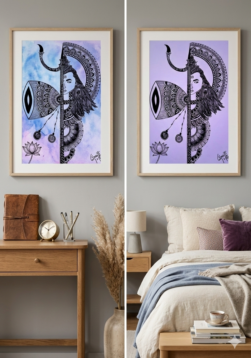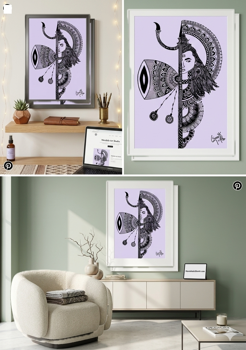 In the silence of the lockdown, this piece was born. The Damru at the center represents the first sound of the universe—the vibration that creates order out of chaos. Surrounded by 108 layers of symmetrical patterns, it serves as a visual metronome for your meditation space, helping you sync your breath with the rhythm of the art.
